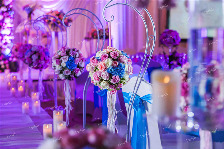 这又是一场我在婚礼前一周才见到新娘,婚礼前二天才见到新郎的婚礼。因我们经常接触涉外婚礼,所以已经很有经验,用网络沟通细节,设计等事项,而这场婚礼还有相当给力的桑亚婵老师代表新人跟我们做对接统筹,一切都很是顺利。婚礼用了安静的湖蓝色点缀甜蜜的粉色,市面上的常规湖蓝布料的不符合我们的要求,因此现场使用的湖蓝桌布和椅背装饰都是定制的,最大程度上表达了我们对婚礼色彩和细节的要求和把控, 呈现的效果得到新人和来宾的赞赏。粉色总是代表浪漫,如梦幻般的粉色总能让你的婚礼呈现甜蜜的氛围。用不同深浅的粉色能打造出一场完美的婚礼,而蓝色有如一片蓝天,让人能够平静下来,而且这种颜色能和周边的环境自然衔接,清新优雅。甜品区让来宾在仪式开始前吃点小点心,分享新人的甜蜜,体现新人对来宾的细致用心。粉色渐变气球背景轻松有趣,甜品以粉色和蓝色作主调,加上新人LOGO,体现主题感。饱满的花艺,以不同深浅的粉色配搭湖蓝色点缀,使用具通透感的高身花器,呈现清新,时尚,优雅的视觉感。奶白色的基调更能衬托出粉色主调的甜蜜和浪漫,而湖蓝色为婚礼加上一抺清新的感觉。粉色陶瓷玫瑰糖盒和定制珍珠桌牌更为婚礼添上精致的细节感。婚礼LOGO用了繁花似锦的设计,并延展设计至婚礼请柬・桌牌・签到发桌号卡等纸品细节上,既有统一主题定制感,亦喻意新人的爱情有如盛开的花朵, 纯凈, 相遇相知在最美好的年华。新娘潇潇漂亮性格又可爱,婚礼那天虽然时间紧凑,但她笑容一直挂脸上,仪式环节时虽经常忍不住笑场,但和稳重的新郎互动起来,却是满满的甜蜜耶。衷心祝福潇潇和杨子新婚快乐, 百年好合。(Yuki L.)